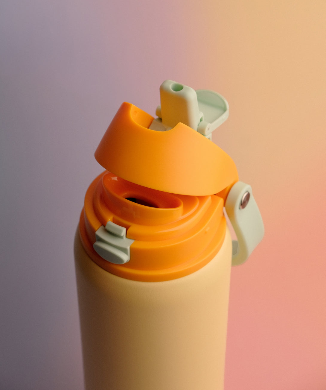 Sip upright through the built-in straw or tilt back to swig from the flip cap opening.